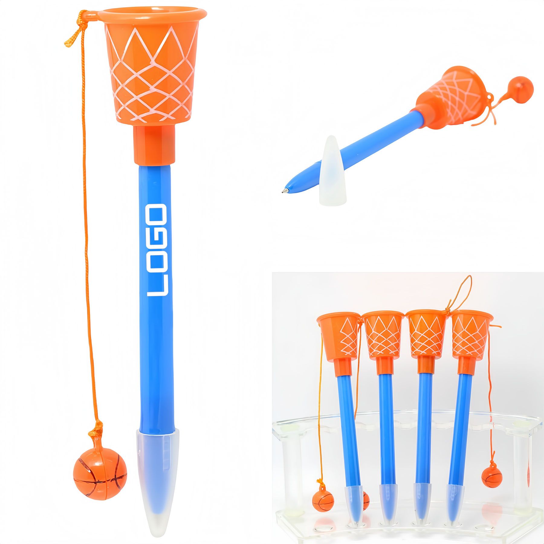 Make everyday writing a slam dunk with ballpoint pens that feature a 'hoop' on top, along with a small basketball connected with a string. Add an element of play and whimsy to your recipients' days while building excitement before and during the tournament.